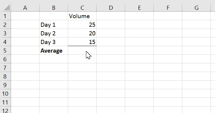 We can type specific numbers or cells in this function, or just select a range we’d like to check. For example, to calculate the average for the D3:D7 range, we’ll type: