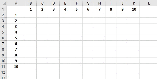 Let’s see how we can do the entire Multiplication Table calculation, using only one formula!
