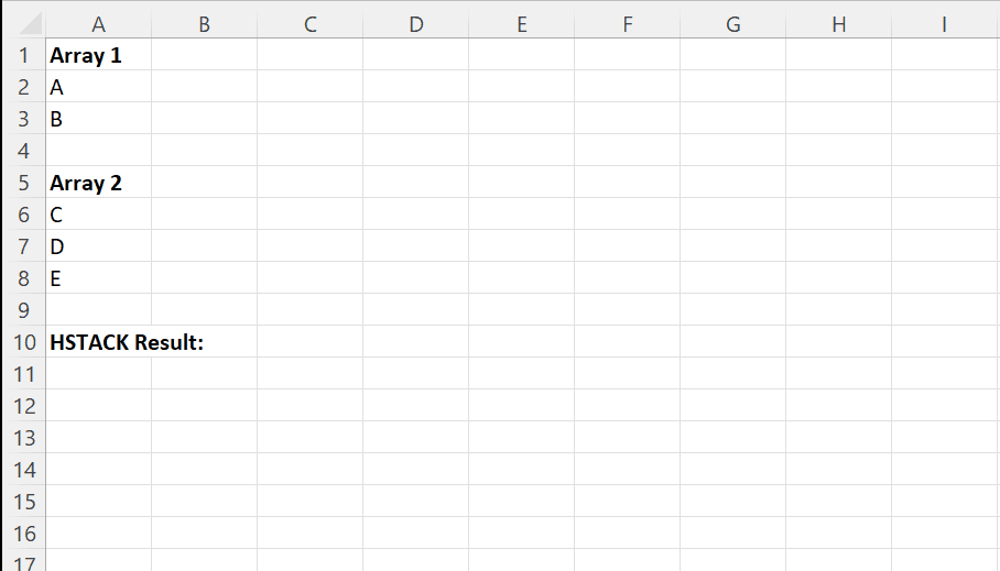 array1 – The first array we want to stack. The first array we select will appear on the leftmost side of our newly created array.