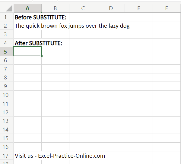Tip – SUBSTITUTE function is case-sensitive. This means that we need to be careful and make sure we use (or don’t use) capitalization where needed. Substitute of “d” is not the same as Substitute of “D”!