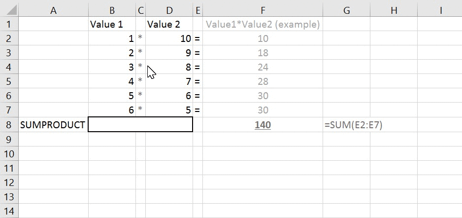 SUMPRODUCT Excel function returns the sum of the products of two or more arrays.