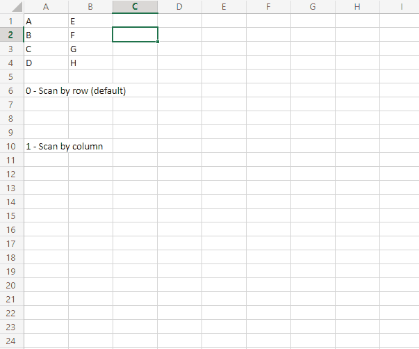 [scan_by_column] – Optional, use this to determine the order in which the array is scanned. The default is 0, which means – “scan by row”. If the value is set to 1, Excel will scan by column.