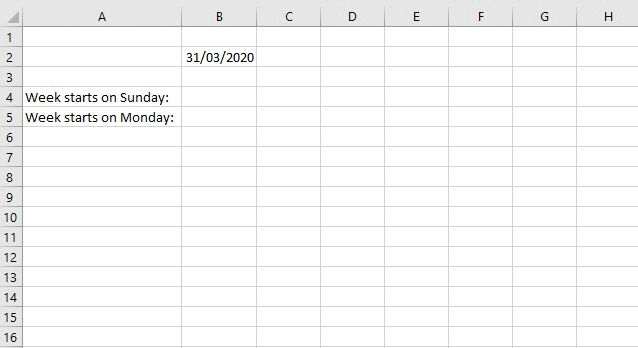 [return_type] – Indicates which day is considered the first day of the week. By default, if the argument is omitted, the first day of the week is Sunday. If we want the week to start on Monday, we can type “2” in this argument.These are the various options for the first day of the week: