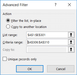 Filtering numerical values using Advanced Filter