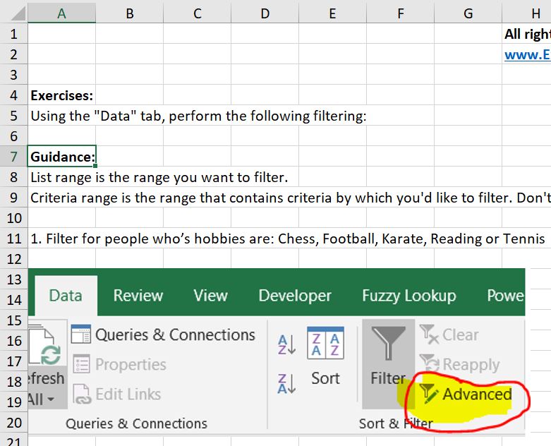Download the Advanced Filter exercise now!