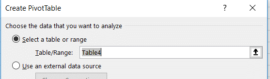 Now we can create/update the Pivot Table that will use the table as the source data, and when the table will be updated- the Pivot Table’s source data range will be updated as well. Here’s how our Data Source looks like: