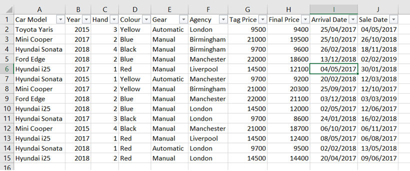 Let’s assume we want to analyze a database of cars sold by a car vendor: