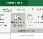 Analyze tab -> Fields, Items & Sets -> Insert Calculated Fields: