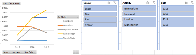 - We can have multiple slicers to our Pivot Table, which will work simultaneously: