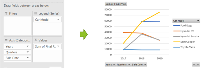 It is important to note that Pivot Charts behave exactly as Pivot Tables, so each functionality that can be used in Pivot Tables, can also be used in Pivot Charts.